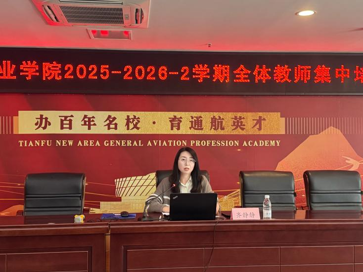 强师德正师风,铸师魂育新人。3月11日,天府新区通用航空职业学院在学术报告厅举行全体教师师德师风专题集中培训,将师德师风建设作为教师队伍建设的核心工作扎实推进。本次培训以“坚守底线,追求高线——争做新时代‘四有’好老师”为主题,从政策解读、考核落地、长效建设三个维度系统部署相关工作。副校长兼人事处处长齐静静担任主讲,各教学单位负责人、专兼职教师及教务处全体人员参会,培训由教务处曾珠主持。