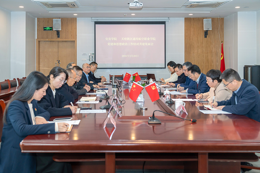 徐诗勤代表学校对宜宾学院一行的到来表示热烈欢迎,详细介绍了学校办学历史、专业布局、党建工作基础。他指出,作为我国第一所以通用航空命名的高校,学校正聚力建设“低空经济引领者、通用航空新高地”,此次结对共建是深化党建引领、赋能思政提质的创新举措,是学校补齐短板、提质增效的重要机遇,期待两校深度协同、共赢发展。