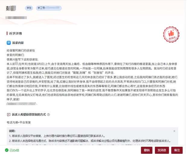 强队伍,高频共振锻造社区育人队伍。八支队伍聚合力。学校围绕“4+”(加、嘉、佳、家)社区新模式,推动各级领导干部、专兼职辅导员、院系教师队伍、新生成长导师、专业工作团队、物业保障人员、朋辈互助骨干及五育协同力量八支队伍深度入驻社区,着力构建学业、职业、心理、生活“四位一体”的学生发展辅导工作体系。学工队伍强化服务效能,社区辅导员24小时响应,形成“学生反映—集中转办—按期反馈—跟踪效果”的工作闭环,确保问题及时处置;专业教师落实学术导师进社区,常态化开展小班学术沙龙与科研指导;物业保障部门联合多职能单位构建网格化服务体系,服务响应效率提升显著。聚力赋能增本领。聚焦社区建设重点任务,学校常态化开展岗前技能、急救知识、安全管理等专题培训,先后组织学生社区辅导员安全专项培训会、应急救护专项培训等系列活动,每学年覆盖宿舍长1700余人次,内容涵盖心肺复苏、AED使用、消防演练与隐患排查,全面提升队伍履职能力与应急处置水平,筑牢安全“第一道防线”。广大后勤保障人员以高度的责任感和温情的服务意识,持续为学生健康安全保驾护航。如宿管阿姨曾在巡查中及时发现晕倒在楼道的学生,并成功将其送医救治,同学们也以一封封真挚的感谢信进行反馈与肯定。搭建平台促成长。依托社区辅导员月度例会、专题培训与部门联动机制,推动各支队伍在信息互通、资源共享与经验互鉴中形成协同效能。学生骨干在实践中提升履职能力,在活动组织中提升公共服务素养,为社区育人注入持续、专业的人才动能。
