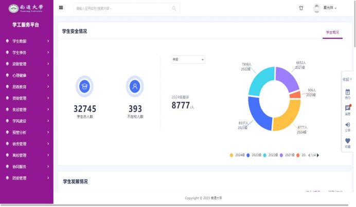 构建大数据集成平台,深度挖掘学生成长数据,生成包含学业、心理、实践等维度的“数字画像”,为个性化育人提供依据。如通过分析学生活动参与数据,定向推送科创、文化类活动,学生参与率从65%提升至88%;依托心理测评数据,建立“预警—干预—跟踪”机制,年均干预心理危机个案50余起,筑牢心理健康防线。