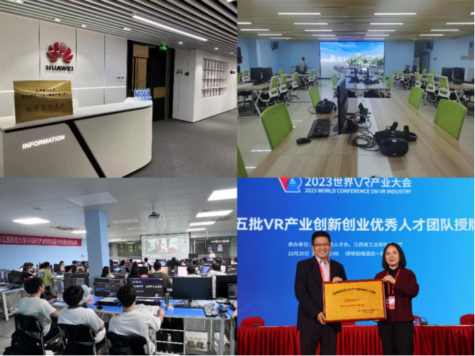 构建产教协同平台:打造“阶梯式”实践育人体系。学校积极引企驻校,与企业共建“数字工匠学生社区技能工坊”“打造产业创新中心”“成立社会服务工作站”等实践育人平台。学校与企业共建的“学生社区技能工坊”配备了先进的专业设备,开设多门项目化课程,采用“双师课堂”模式,企业导师驻点授课。在学生社区内打造的产业创新中心定期邀请行业专家、技术骨干入驻,开展“VR大小讲堂”“项目实战工作坊”等活动,建立“企业命题-师生解题-成果转化”协同机制,组建“师生+工程师”联合团队攻克项目。学校联合地方政府、行业协会及头部企业建立的“乡村振兴社会服务工作站”以“技术赋能、产业升级、服务社会”为宗旨,构建“技术研发-成果转化-产业应用-社会服务”四位一体的协同创新体系。通过“技术扶贫”实践,开发文旅项目,形成“专业服务社会”的育人闭环。