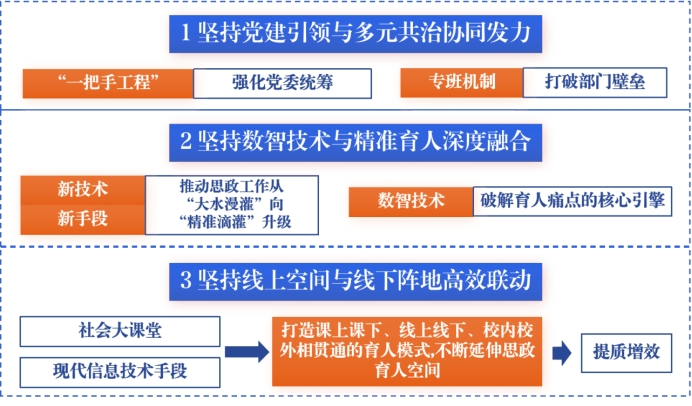 要坚持数智技术与精准育人深度融合。依托大数据等新技术、新手段,推动思政工作从“大水漫灌”向“精准滴灌”升级,让数智技术成为破解育人痛点的核心引擎。