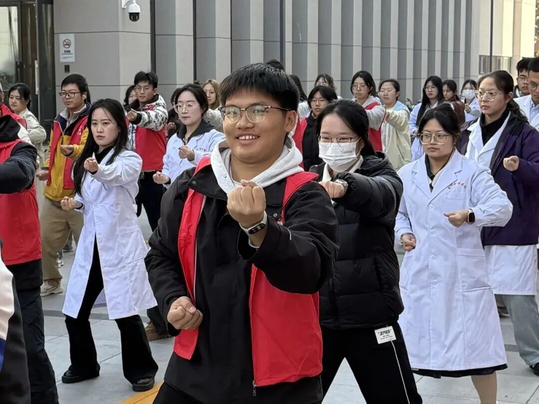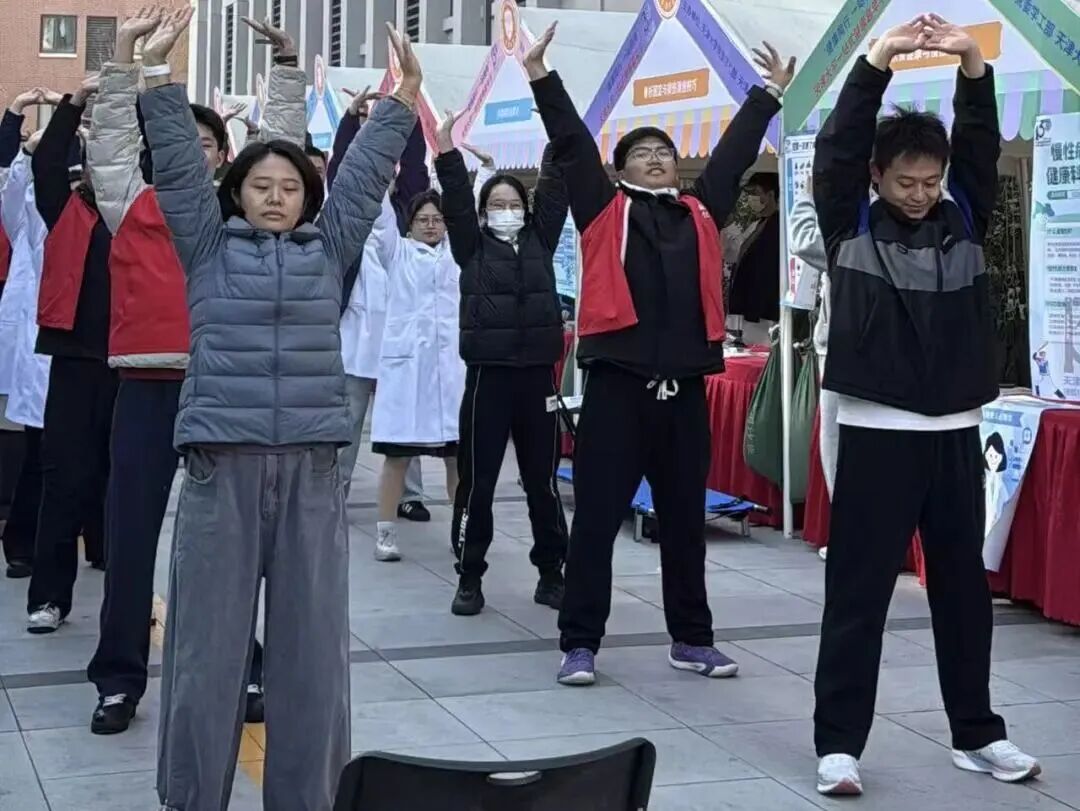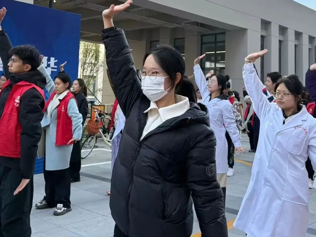 接着,医学院党委副书记朱华带领全体参与者共同练习八段锦。在悠扬的音乐中,现场师生通过调身、调息、调心,感受中国传统健身气功的独特魅力,也为整场活动注入了活力与内涵。