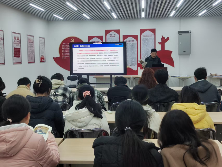 随后,张新宇同志带领大家学习了2025年第22期《求是》杂志《因地制宜发展新质生产力》一章,重点学习了新质生产力的科学内涵、核心发展要求与关键实践路径。明确新质生产力以科技创新为主导,需通过技术突破、要素优化配置推动产业转型升级,既要聚焦瓶颈领域 “补短板”,也要布局新兴产业 “育新机”,同时统筹教育科技人才一体发展,为高质量发展筑牢支撑。