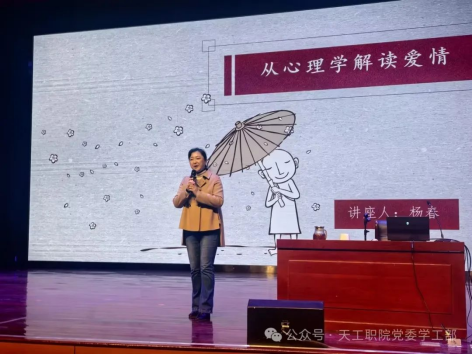 人间三月天,春华已开颜,第115个“三八”国际妇女节如期而至。为了培养我院女大学生科学的性别意识、帮助女大学生树立正确爱情观,巧妙地化解恋爱中的困境、消除恋爱中的烦恼。2025年3月7日下午,党委学生工作部在学院礼堂举办了“六自”女生系列教育——“从心理学解读爱情”主题讲座,特邀天津师范大学心理部杨春教授主讲,500余名师生聆听了本次讲座。