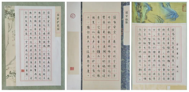 活动自启动以来,得到了各系的积极响应与热情参与,同学们纷纷挥毫泼墨,以笔为剑、以墨为锋,将心中对国家安全的理解与感悟倾注于笔端。一幅幅书法作品,或刚劲有力,如松柏傲立,彰显守护国家安全的坚定决心;或飘逸洒脱,似行云流水,流淌着对盛世安宁的美好期许。