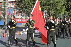 迎着初升的朝阳,学校学生国旗护卫队迈着铿锵有力、整齐划一的步伐,护卫着鲜艳的五星红旗,庄严地走向升旗台。在雄壮激昂的《义勇军进行曲》中,五星红旗冉冉升起,迎风飘扬。全体师生肃立行注目礼,用赤诚之心铭记历史,缅怀先烈,汲取奋进力量。