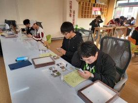 活动现场,社区统一提供了薄荷、陈皮、桂花等十余种兼具香气与观赏性的中药材,以及相框、胶水、镊子等全套工具,同学们无需额外准备,便可全身心投入创作。没有专业绘画功底的限制,大家充分发挥想象力,或拼贴出简约雅致的植物纹样,或勾勒出灵动可爱的卡通形象。镊子夹取药材时的细致模样、搭配色彩时的专注神情、完成作品后的灿烂笑颜,交织成现场最动人的画面。弥漫的草本清香,既舒缓身心,更让创作多了份自然意趣。
