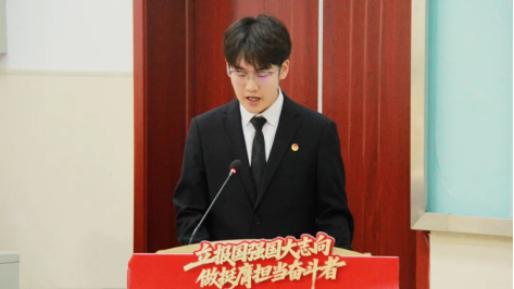 工业与信息化系电气自动化技术24级3班学生白昊轩代表第十五期大学生骨干培训班全体新学员郑重承诺:将珍惜宝贵学习机会,筑牢信仰根基,投身实干历练,砥砺道德修养,努力成长为信仰坚定、能力突出、素质过硬、作风扎实的新时代学生骨干,在民族复兴的伟大征程中书写无愧于时代的青春篇章。