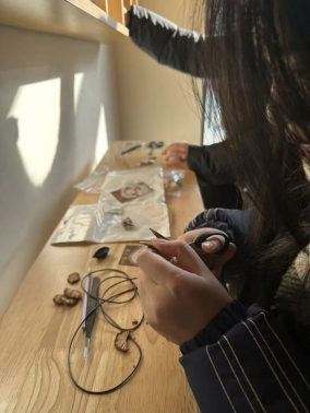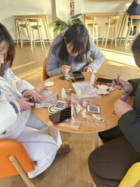 游园会以“岁启新章”非遗辞旧迎新为主线,设有“中式宋锦风铃”“中药手串”等非遗体验摊位,让同学们在亲手制作中近距离感受非遗魅力。每一项手作都蕴含着中华传统文化的深厚底蕴,同学们的作品中也寄托了对新年的美好祝愿。现场氛围热烈温馨,大家在实践中不仅学习了非遗技艺,更增强了对中华优秀传统文化的认同与自豪。