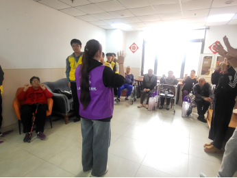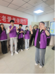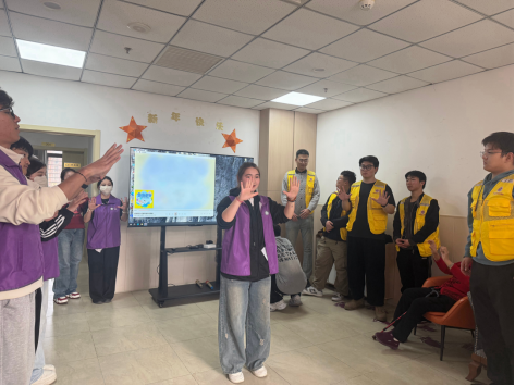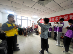 趣味问答结束后,志愿者们带领老人们表演经典手势舞《红星闪闪》。大家耐心拆解每一个手势动作,结合曲目背后的革命故事,带领老人们逐段练习,一同重温峥嵘岁月。