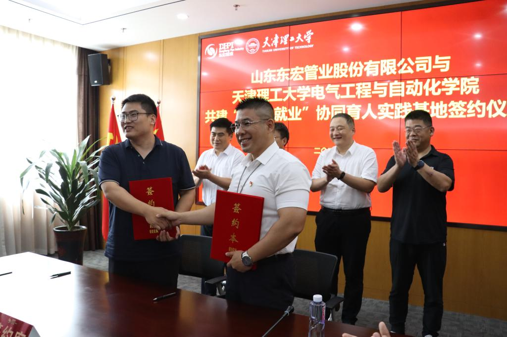 电气工程与自动化学院暑期社会实践团先后前往山东省多家与学院专业发展相关企业参观学习,并与山东东宏管业股份有限公司签约“党建+就业”协同育人实践基地。签约仪式上,济宁市工业和信息化局党组成员、副局长张睿,山东东宏管业股份有限公司党委副书记、监事会主席、办公室主任马伯群,科技处和学院负责同志参加活动。双方将充分发挥各自优势,推动校企合作协议中的各项事宜落地落实,为人才培养、科技创新作出新贡献。