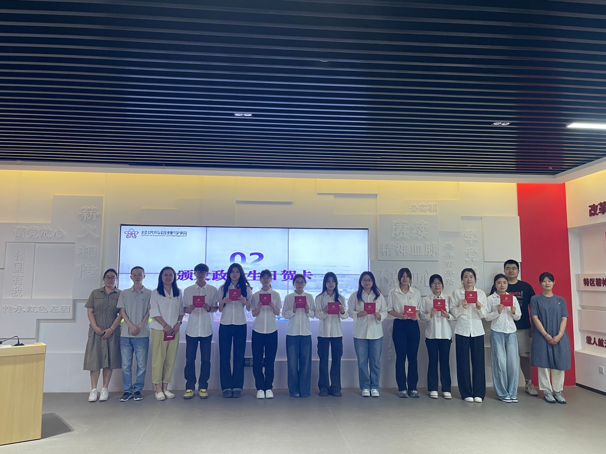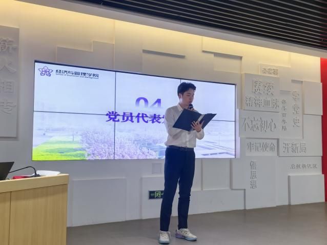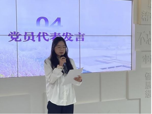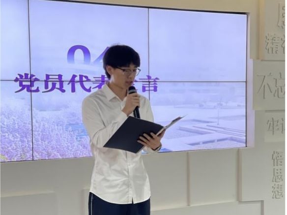 副书记何亚蓉为全体毕业班党员颁发政治生日贺卡,并带领全体党员同学重温入党誓词。并寄语寄语党员同学,一是要坚定理想信念, 保持对党忠诚的美好品格;二是要勇于创新,树立终身学习的理念;三是要乐于奉献,树立服务社会、服务人民的意识;四是要严于律己,走向社会后保持共产党员先进性、示范性,步入工作岗位后要将本职工作做好,争做有理想、敢担当、能吃苦、肯奋斗的新时代好青年,做起而行之的行动者,当攻坚克难的奋斗者,用青春之心、笃学之志、奋斗之行谱写人生的美丽画卷。