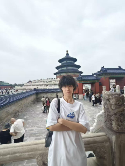 在天坛,古建巍峨,23级给排水科学与工程专业张起翔同学站在天坛建筑前,传统与现代在此交融,他以自信的姿态与历史文化遗产同框,在千年古迹中触摸祖国历史的厚重,抒发对祖国文化的自豪。
