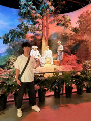 在井冈山革命博物馆内,23级土木工程专业贾子轩同学于红色展陈前,镜头定格下与革命历史的同框。他在触摸先辈奋斗足迹中感悟初心,让青春身影与红色精神相融,将炽热的爱国之志深深镌刻在对革命信仰的传承里。