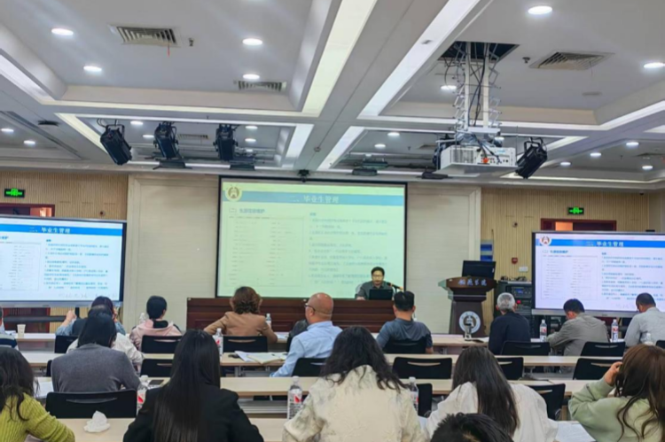 4月17日下午,学校在大学生活动中心易班会议室举办2025年毕业生就业工作培训会。各学院分管学生工作负责人,毕业班辅导员及学生处就业工作人员等近60人参加培训。培训会由学生处负责人主持。
