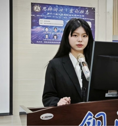 吴璇深知思想是行动的先导。自入学伊始她便以一名共产党员的高标准严格要求自己,主动学习党的创新理论,深刻领会其精髓要义。积极参与党组织的各项学习与实践活动,在思想汇报与组织生活中剖析自我、提升觉悟,不断深化对党的性质宗旨的认识。这份对真理的执着追求和对组织的赤诚向往,使她迅速成长为思想上的“排头兵”、行动上的“先行者”。她将坚定的政治信仰内化为服务同学、奉献集体的强大精神动力,让党员身份在校园生活的点滴中熠熠生辉,展现出青年学生党员应有的政治品格与使命担当。