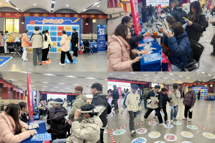 “知心竞答”环节,以趣味答题形式普及心理健康常识,破解认知误区;便携式VR设备吸引了同学们的注意,大家借助VR设备开启“心域漫游”,在沉浸式场景中学习身心放松技巧;参与者在“心跳反射”环节锻炼自己认知灵活性与抗干扰能力,以更好地应对学习和生活中的各种挑战。