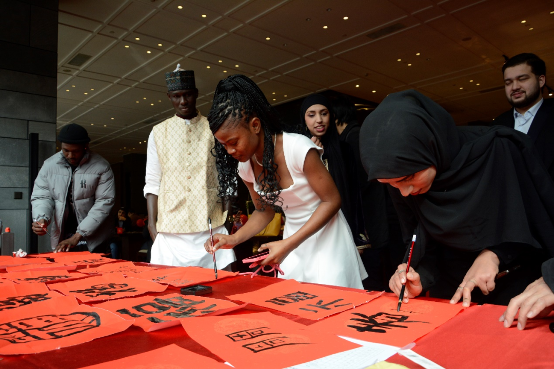 赤道几内亚籍国际学生云兮体验春节写 “福”字