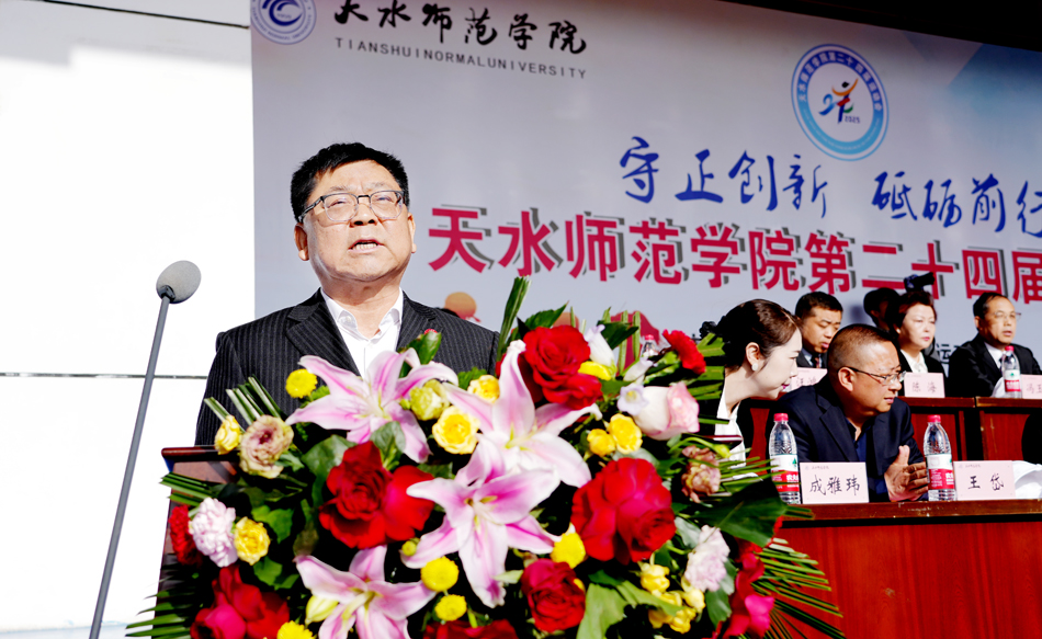 4月23日上午,天水师范学院第二十四届运动会在学校东操场开幕。在校党委常委及大会组委会成员出席开幕式,党委常委、副校长汪咏国主持仪式。