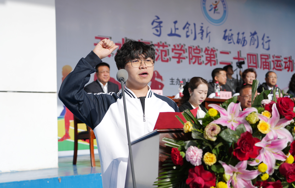 教师教育学院学生李欣毅和体育运动与健康学院教师赵瑞星分别代表运动员和裁判员宣誓。