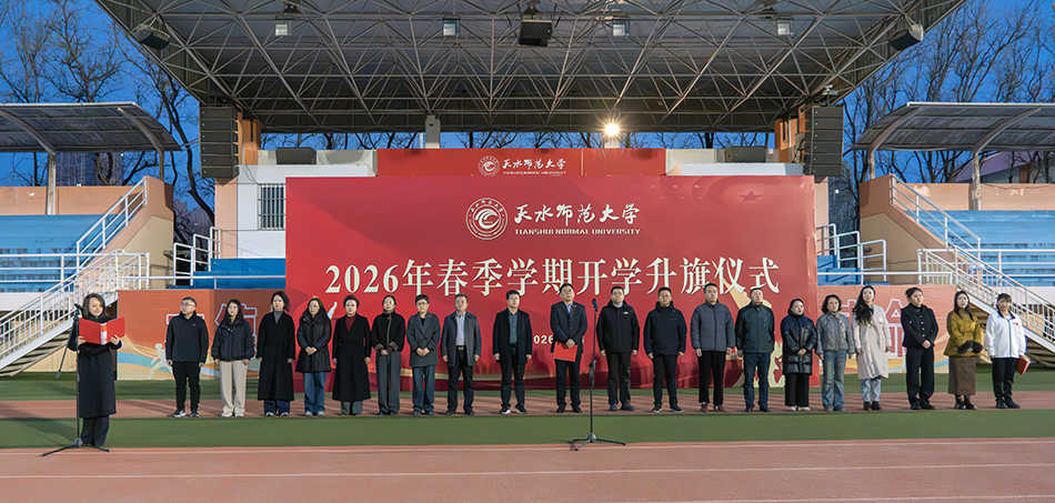3月2日上午7时,天水师范大学在东田径场举行2026年春季学期升旗仪式。党委常委、副校长汪咏国出席仪式。党委学生工作部、党委研究生工作部、校团委相关负责人,各学院分管学生工作领导、团委书记、辅导员,以及4700余名学生代表共同参加了本次活动。