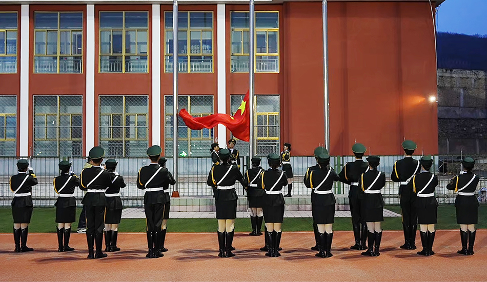 仪式开始,国旗护卫队迈着整齐有力的步伐,护送国旗入场。伴随着“升国旗,唱国歌”的庄严号令,全体师生肃立注目,雄壮的《义勇军进行曲》响彻校园上空,五星红旗在晨光中冉冉升起,迎风飘扬。