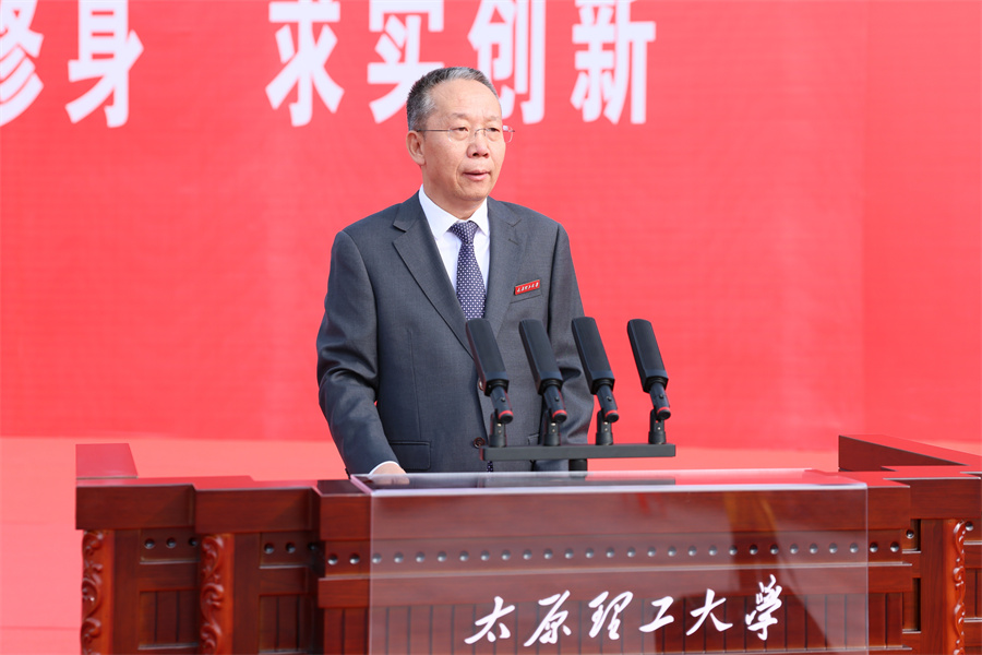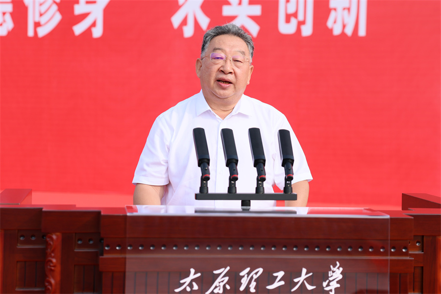 校长孙宏斌代表学校向怀揣憧憬与热忱、踏入校门的14000余名新同学,致以最衷心的祝贺。他向新生和家长介绍了太原理工大学123年的发展历程,阐释“求实 创新”校训的深刻内涵,鼓励新生以追求真理为基、以创新创造为翼,开启大学精彩旅程。围绕新时代青年成长,他勉励同学们要筑牢理想信念。他指出,今年是中国人民抗日战争暨世界反法西斯战争胜利80周年,山西是英雄的土地,这里的人民为抗战胜利作出了重要贡献,太原理工大学同样承载着厚重的红色记忆,涌现出一批用知识报国、为抗日献身的优秀学子,作为新时代太理人,希望同学们传承红色血脉,把个人理想信念融入民族复兴伟业,让太理的红色基因在新时代焕发出最耀眼的光芒。如何在AI时代里完成好大学学业,他强调,AI可成为学习助手,但绝不能替代自主思考与创造,学校将开设AI基础通识课与创新实践课,帮助学生学会与AI“并肩作战”,成长为拔尖创新人才。面对大学可能遇到的困难挫折,他以校男篮的故事为例,勉励大家要正视挫折、永不言败,把挫折压力转化为提升动力,在愈挫愈勇中筑牢精神根基。最后,孙宏斌寄语新生以家国为“魂”锚定理想、以AI为“翼”升级学业动能、以挫折为“基”锤炼品格,将“求实 创新”校训刻入心中,在太理沃土茁壮成长。