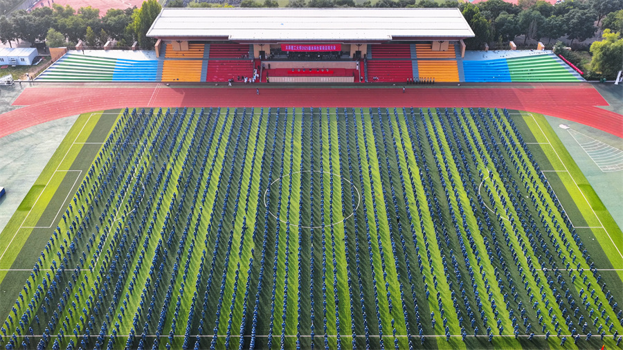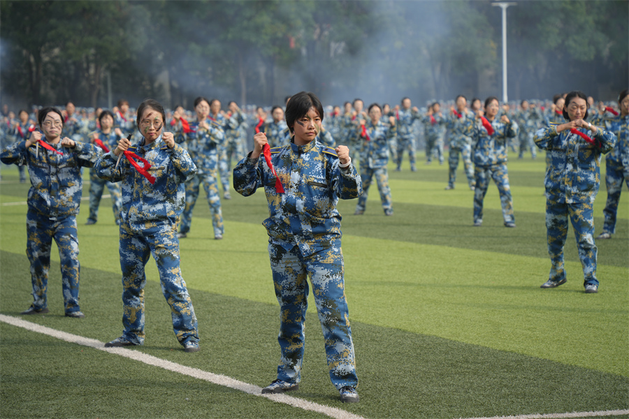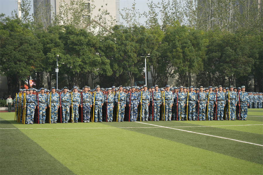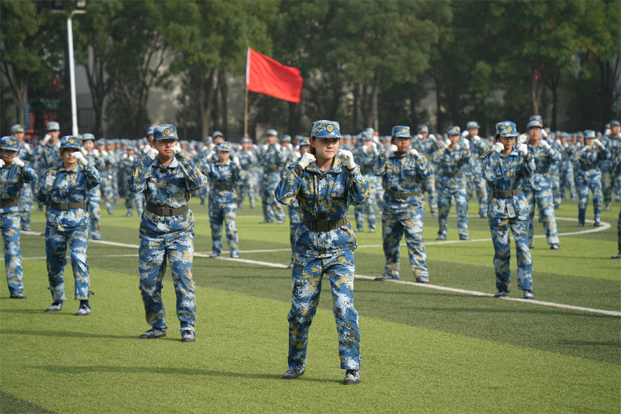 国歌响彻绿茵场,2025 级本科新生以最饱满的状态唱响热爱,致敬祖国。伴着嘹亮歌声收尾,军训成果总结汇报即刻开启。新生们身着迷彩,身姿挺拔、英姿飒爽,迈着整齐步伐入场,瞬间点燃全场氛围。