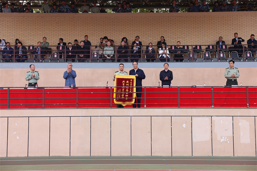 肖连团宣读了《关于对2025级本科生军事技能训练先进集体和先进个人进行表彰的决定》,与会领导为获奖集体和个人颁奖。