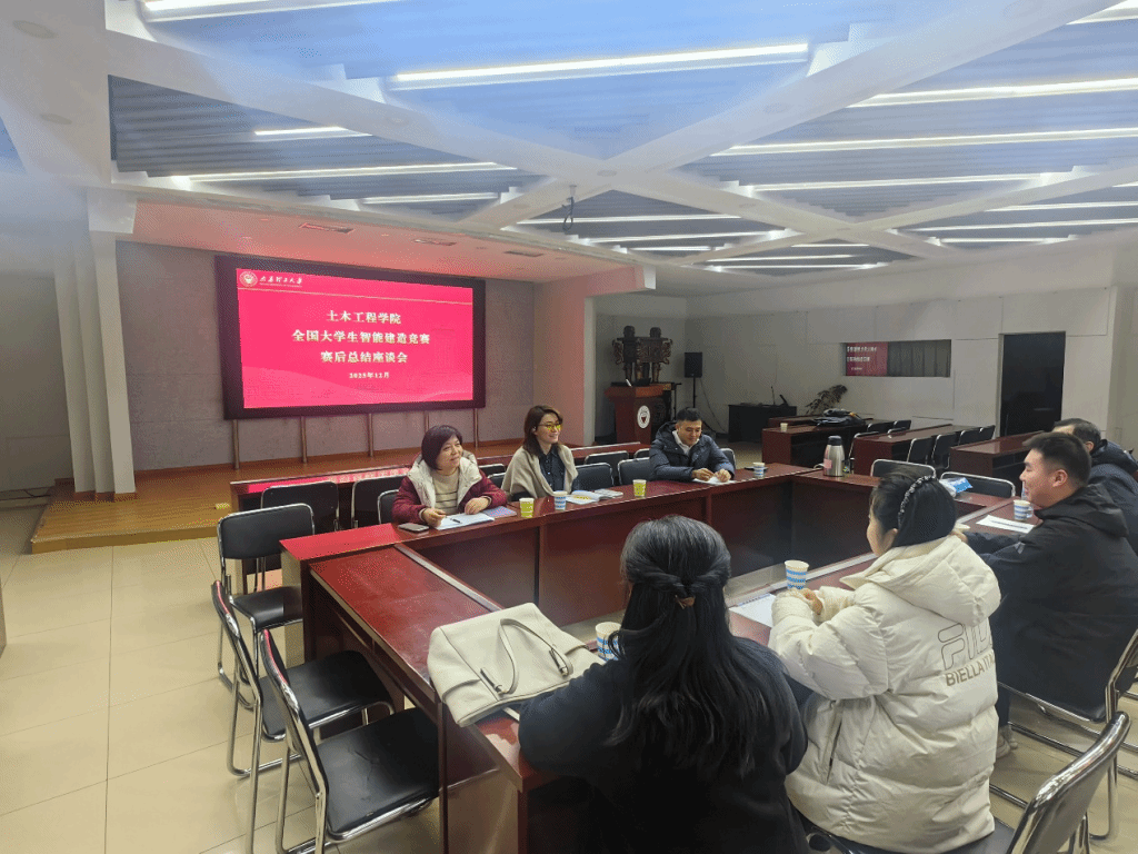 12月9日,学院召开全国大学生智能建造竞赛赛后总结座谈会。王蕊副院长邀请参加培训和参赛的土木工程、给排水和暖通等相关专业教师和学生代表参会。