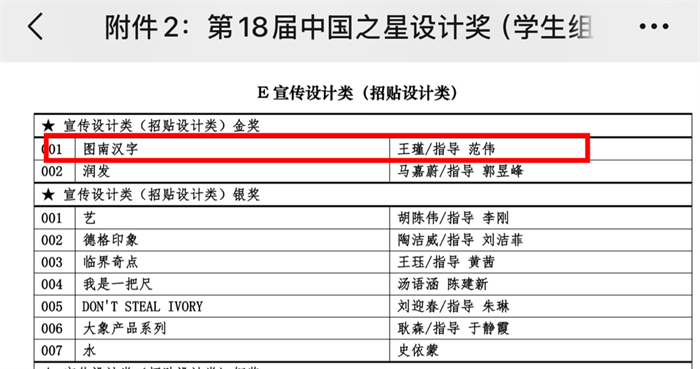 我校学子首次荣获“第十八届中国之星设计奖”学生组金奖