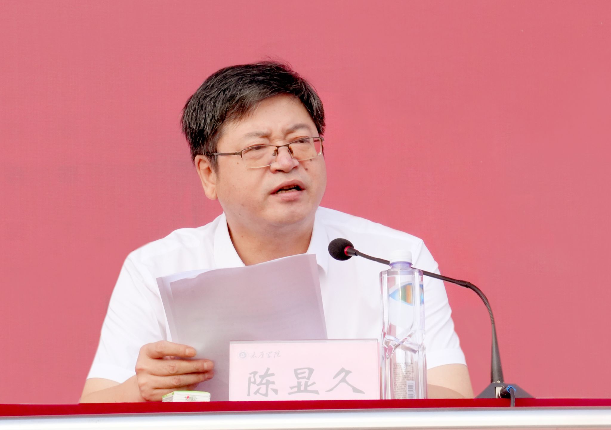 陈显久在主持典礼时勉励即将开启大学生活的全体同学,要把太原学院作为追逐梦想的舞台、成长成才的摇篮,在这里既要收获知识的力量,也要收获友谊的温暖,既要锤炼过硬的本领,也要涵养坚定的信念,成长为有理想、有本领、有担当的时代新人。