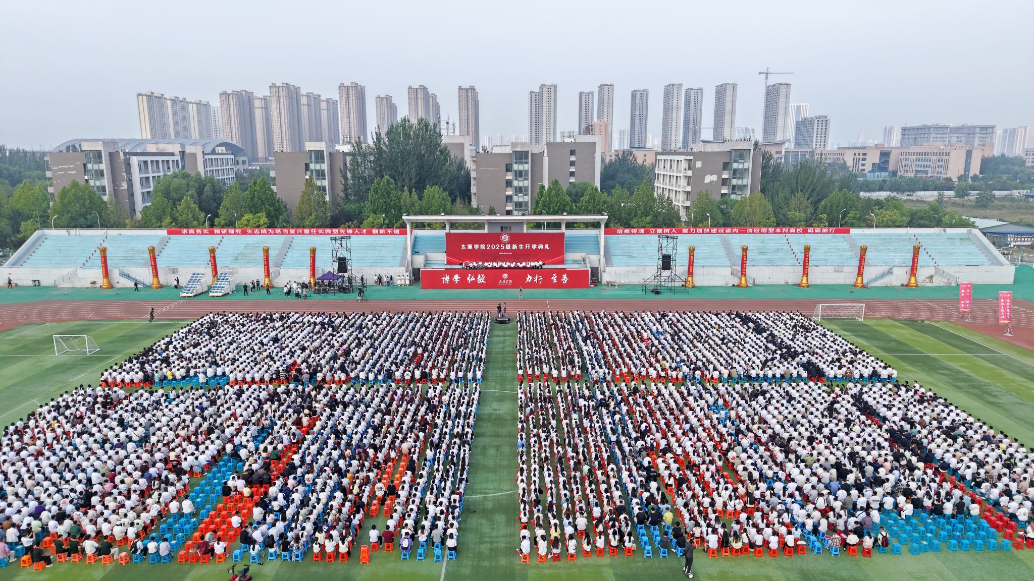 莘莘学子,风华正茂。9月15日上午,太原学院2025级新生开学典礼隆重举行,4700余名新生齐聚汾东校区体育场,共同开启新的征程。校党委书记郝勇东,党委副书记、校长蔡江辉等全体校领导出席典礼。各职能部门负责人、各院系党政班子成员,新生辅导员、教师代表、杰出校友代表及新生家长代表参加典礼。典礼同步在网络进行直播。典礼由校党委副书记陈显久主持。