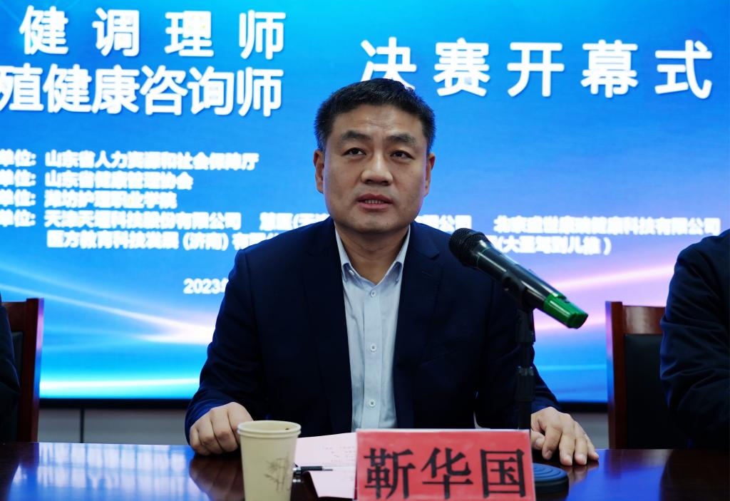 靳华国在开幕式讲话中介绍了山东省健康管理协会近年来,立足“健康中国”“健康山东”所做的主要工作和取得的成绩,并指出本次大赛对于高技能人才队伍建设,提升技能人才的竞争力的积极推动作用,寄语参赛选手借助技能大赛,与时俱进、开拓创新、追求卓越,为卫生健康事业发展做出新的贡献。