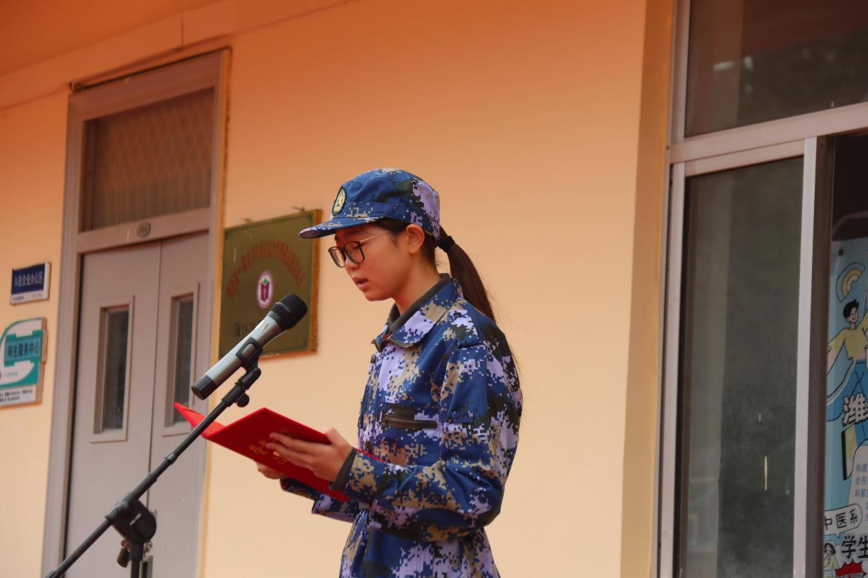 郑硕寄语新生,希望同学们服从命令,听从指挥,刻苦训练,挑战自我,传承军人优良作风,展现潍护学子青春担当。2025级口腔医学4班蔡长芮作为新生代表郑重承诺:一切行动听指挥,严守纪律、刻苦训练、团结互助,展现新时代医学生的青春风采。