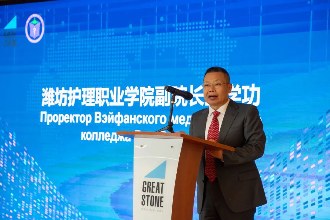 塔巴纽霍夫在致辞中高度肯定中医药的千年传承与实践价值。他指出,白俄罗斯已通过立法为中医发展提供有力支持,中白工业园是推广中医适宜技术、服务民众健康的理想平台。管委会将全力支持“岐黄学堂”建设,视其为两国医疗合作的重要实践。他对潍坊护理职业学院举办的中医健康讲座和文化节活动表示感谢,并坚信“岐黄学堂”定能成功运营,切实提升白俄罗斯医疗服务水平。