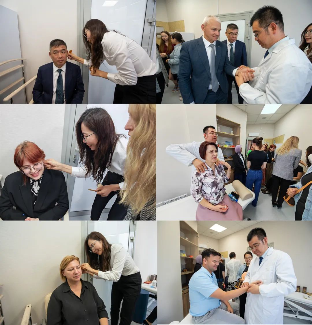 仪式现场,由中白工业园、潍坊护理职业学院、白俄罗斯戈梅利国立医科大学、海虹白俄四方共建的“白俄罗斯-岐黄学堂”牌匾跨越万里亮相中白工业园,与会嘉宾共同为“白俄罗斯-岐黄学堂”揭牌,见证了这一重要时刻。随后,潍坊护理职业学院中医专家举办了中医文化讲座,同步启动了“中医文化节”活动,设置了中医义诊体验区,开展推拿按摩、刮痧拔罐、耳穴压豆等中医药适宜技术体验活动,设置了中医文化展览与互动区,展示针灸铜人、耳穴模型并赠送香囊,吸引园区百余人热情参与,零距离感受了中医药文化的独特魅力和实用价值。