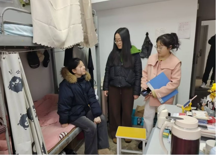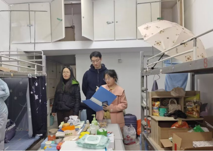 为进一步加强宿舍安全管理,督促学生保持良好的生活习惯,关注学生的思想动态和身心安全,3月12日,经管学院郭锐带领全体辅导员依托温馨小苑社区1开展查寝走访工作。