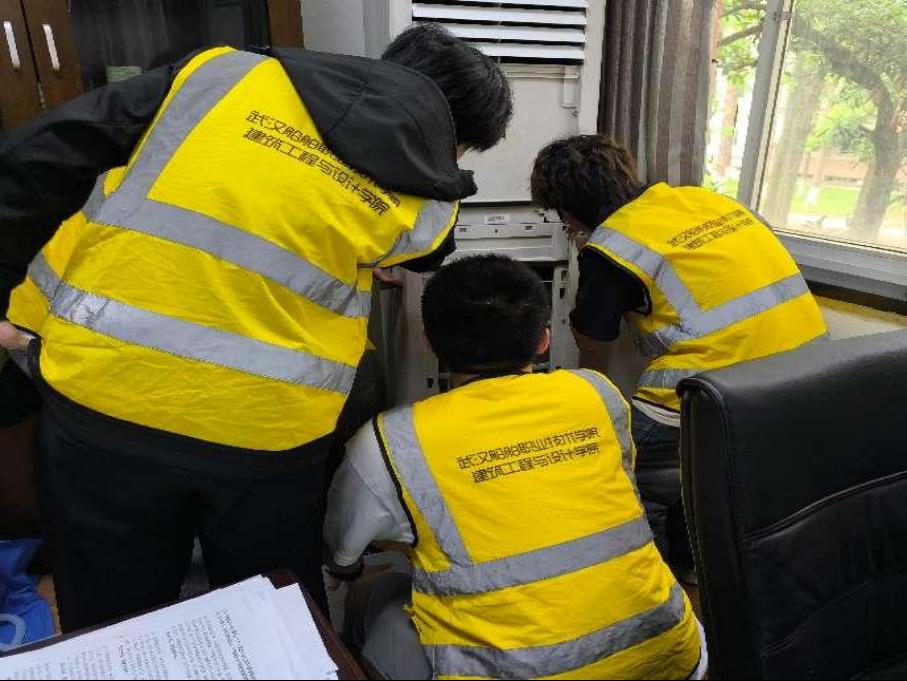为促进学生德智体美劳全面发展,在劳动节到来之际,建筑学院分团委联合暖通教研室共同开展了“致敬劳动者”主题教育。在专任教师黄丽的指导下,10余名暖通专业学生发挥专业所长,对建筑学院多间办公室开展空调清洗。