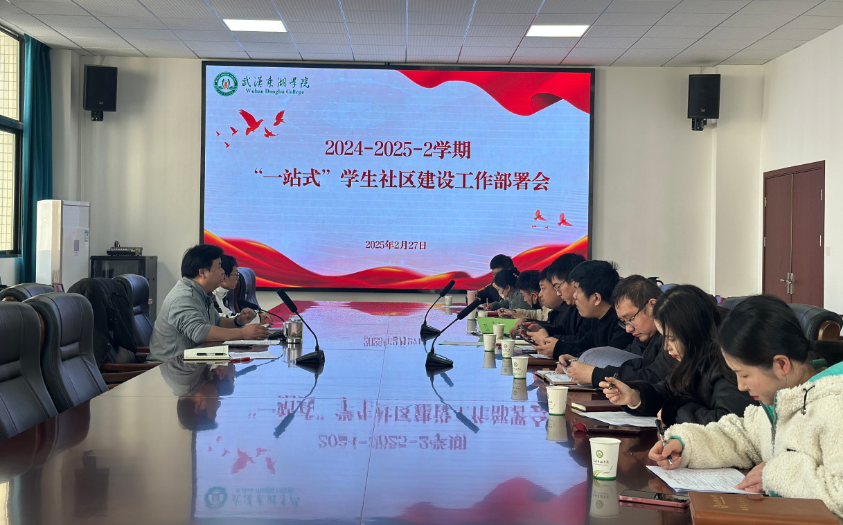 2月27日,武汉东湖学院2024-2025-2学期“一站式”学生社区建设推进会在大学生活动中心302会议室召开。“一站式”学生社区综合管理中心主任寇超,各学院分团委书记及相关工作人员参加会议。
