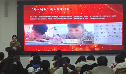 道德讲堂在《学习雷锋好榜样》的合唱中拉开序幕。付蓉在致辞中以“精神如春雨,实践似江河”为喻,强调雷锋精神是知行合一的行动指南。她通过学院“云端英语辅导”“民族文化记录”等典型案例,高度肯定了志愿者们“以有限生命投入无限服务”的担当,着重感谢了康胜美老师对“双师型”支教模式的创新指导,希望进一步推动志愿服务专业化发展。