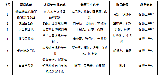我校获奖团队信息: