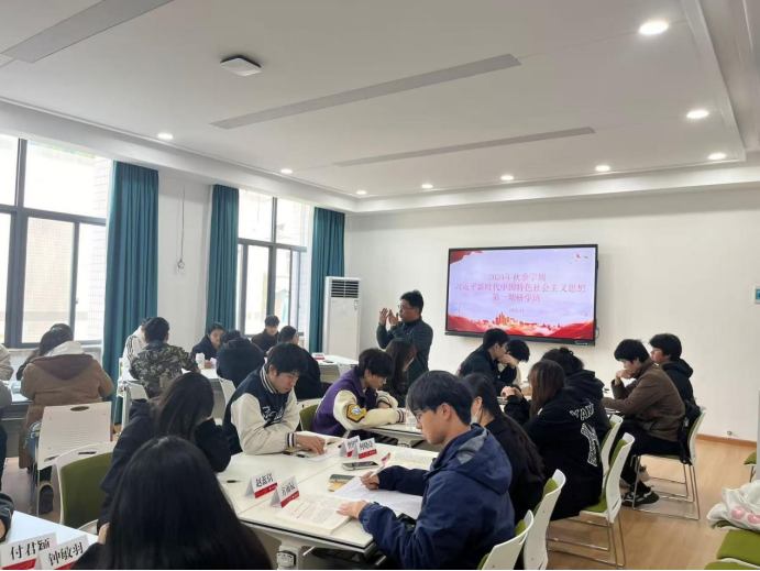 2024年11月20日,2024年秋季学期习近平新时代中国特色社会主义思想学生研学活动在“一站式”学生社区开展,邀请思政课部教师程捍东作为主讲人授课,学工党支部主要负责人、院、系学生会40名同学参加活动。