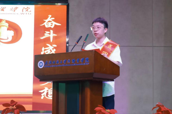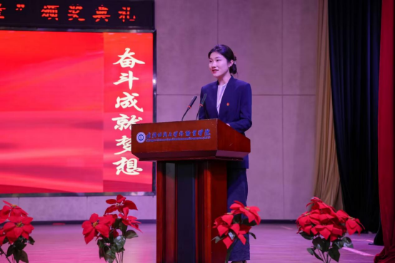“五四青年标兵”代表孔俊杰以“身逢盛世,青年当有为”为题发言。他强调,身为青年要秉承“励志修身、学以致用”校训,把握时代机遇,肩负强国使命。他号召大家将个人理想融入家国发展,在实践中锤炼本领,用行动诠释青年担当,让青春在奉献中闪光。