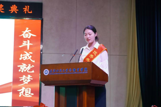 “优秀团务工作者”代表陈婉容发言。她表示,始终做好以立德树人为“优秀团务工作者”根本任务,尽心做好学生思想政治的引领者,聚焦青年成长需求,创新工作方法,用真心关爱学生、用理论武装学生、用实践锻炼学生,助力团员青年在思想洗礼与实践磨砺中筑牢理想根基,成为有理想、敢担当、能吃苦、肯奋斗的新时代好青年。