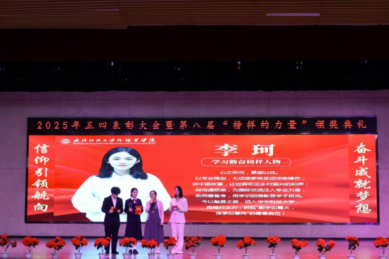 我校五四表彰大会暨第八届“榜样的力量”颁奖典礼以五四精神为引领,通过表彰先进、树立榜样。此次活动不仅肯定了优秀青年的突出表现,更激励全体学生以榜样为标杆,为校园文化建设和社会进步注入了蓬勃的青年力量。