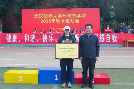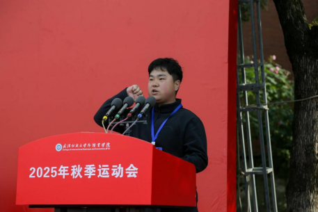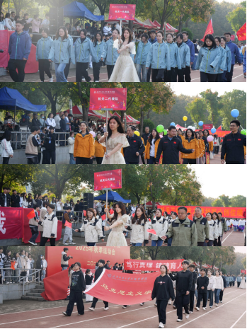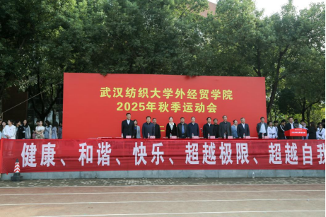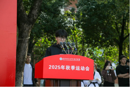 裁判员代表郭宇璇、运动员代表徐文杰依次庄严宣誓,展现了严谨执裁和奋勇争先的体育风尚。校长韦一良郑重宣布:“武汉纺织大学外经贸学院2025年秋季运动会开幕!”现场掌声如潮,气氛热烈。
