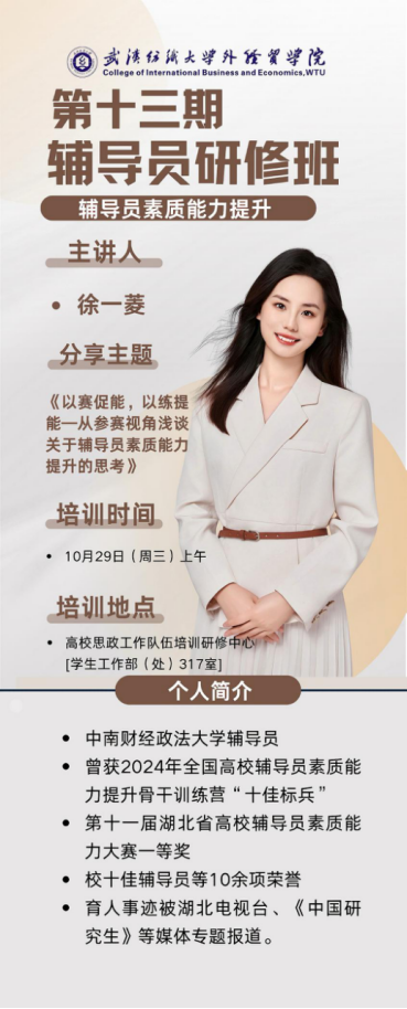 全国高校辅导员素质能力提升骨干训练营“十佳标兵”徐一菱老师做客我校辅导员研修班