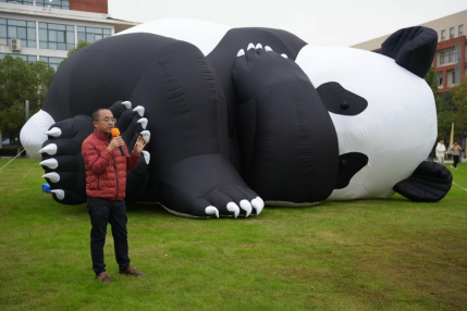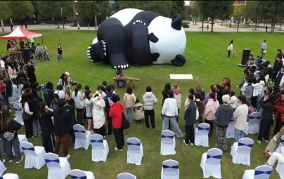 为深入推进校园文化建设,提升学生艺术修养与审美情趣,11月8日,第十八届成才感恩节暨“涓·秋·艺”系列活动在我校图书馆旁大草坪正式拉开帷幕。本次活动以艺术为桥梁,融合自然意象与人文情怀,特别引入艺术家赵半狄创作的熊猫“涓”,营造出富有深度与温度的校园艺术氛围。